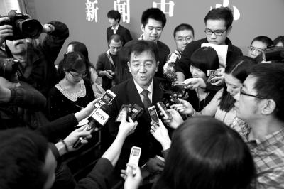 发布会后,北京市环保局副局长、新闻发言人方力接受采访。京华时报记者王海欣摄