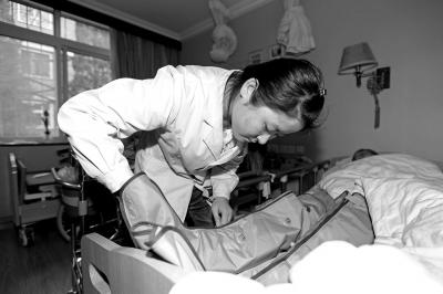 护理员小李为一位老人做理疗。京华时报记者王海欣摄