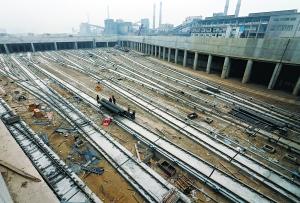 昨天,记者在北京住总承建的地铁7号线车辆段工地见到,全部建设在地下的车辆段主体工程完工,进入设备安装阶段。本报记者 吴镝摄