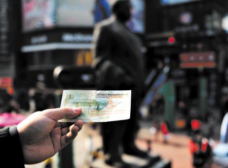 商家促销当街撒“花脸”现钞 钞面盖章印商家名号