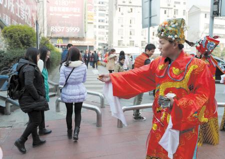 ↑“财神们”的热情很多人并不领情。石祯专 摄
