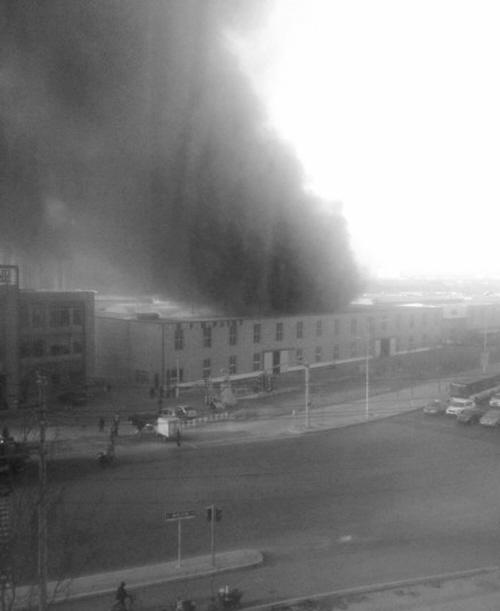 沈阳一厂房起火浓烟“遮日” 保安说没这事(图)