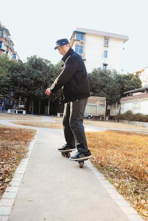 六旬老人爱玩漂移板 称活到老玩到老的人生才快乐