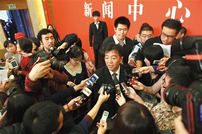 昨日下午的新闻发布会结束后,市环保局新闻发言人方力被记者团团围住询问有关大气污染防治的问题。新京报记者 浦峰 摄