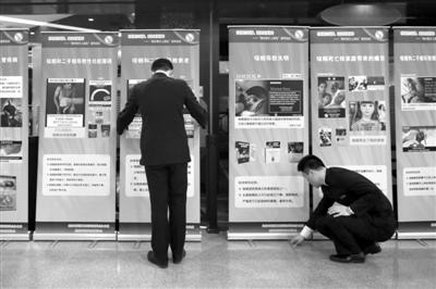 1月13日,北京国际会议中心,工作人员正在摆放吸烟危害健康的宣传海报。新京报记者 侯少卿 摄