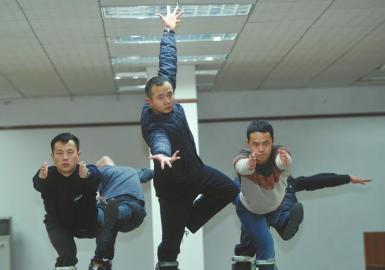 舞蹈队的高难度动作,张剑(中)轻松完成。