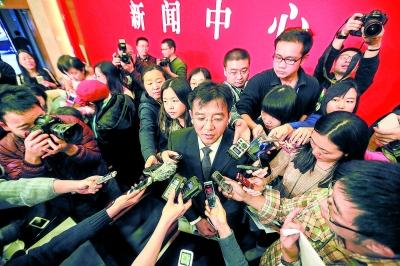 昨天下午,市十四届人大二次会议举行第二场新闻发布会。市人大法制委员会副主任委员李小娟、市人大代表联络室主任陶世欣、市环保局副局长方力就《北京市大气污染防治条例(草案)》、《北京市实施〈全国人民代表大会和地方各级人民代表大会代表法〉办法》、《北京市人民代表大会代表建议、批评和意见办理条例》,回答了记者的提问。(记者 程功摄)