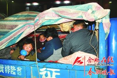1月10日下午三点,34个涡阳老乡分散在三辆车上,浩浩荡荡地从天津静海县与河北黄骅市交界处出发了。丁广春的车上坐了十个人,驾驶室内两个司机,货斗内带着五个成人加三个孩子,另外两辆车上分别乘坐了十五人和九人。