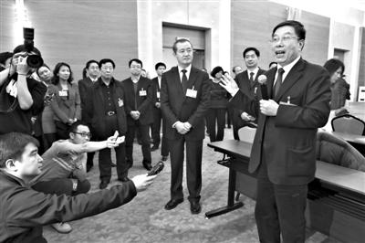 “我就是来感谢大家,感谢大家所做的工作,这都完全超出我的想象。”昨天下午,市人大常委会主任杜德印(右一)参加完分组审议后,看望了参加报道的编辑记者。杜德印说,媒体报道意义重要,媒体是桥梁,群众通过媒体及时了解大会审议内容,把群众的意见通过参会代表通过人民代表大会制度依法有序进入到国家权力机关的决策中,而这正是人民群众依法参与管理的重要形式。新京报记者 浦峰 郭超 摄影报道
