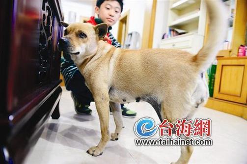 这只狗叫“阿土”,是老徐的孙子小葳在两年前捡到的。“我见到它的时候,它已经少了一条腿。”小葳说,“我们在楼下牵摩托车,它跳到我们的车上来,可怜巴巴地看着我们。大人跟我说如果我敢抱,就抱回家。我就真把它抱回家养,养到现在。”