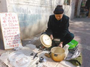 过完年,80岁的潘师傅就不出摊修锅了 记者 王海鹏 摄