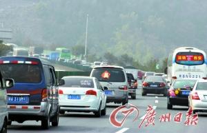 京珠北北行路面车流汹涌。