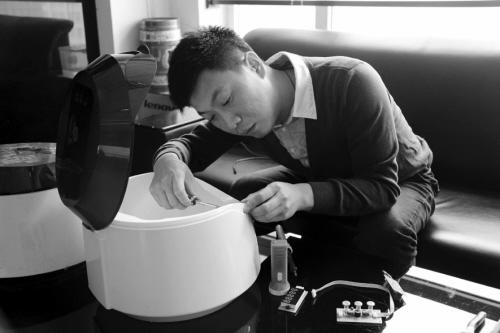 冯德雷,是土生土长的沈阳人,今年36岁。部队转业后,一直从事小家电的销售工作。三年前的一天,他与战友去城边钓鱼,总能闻到阵阵臭气,原来附近有一酸菜腌渍点。当时冯德雷萌生一个想法:发明一台机器,制作出健康、安全的酸菜。