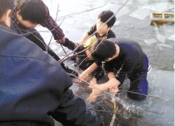 昨天下午3时52分,房山区琉璃河镇刘李店村,两名男童正在107国道旁的鱼塘冰面上玩耍,突然,冰面破裂,两名男童掉进冰窟窿!这时,107国道一辆路过的835路公交车停了下来,车上司机和乘客往事发地点狂跑,然后跳入冰水中将孩子救出。经医院检查,两名男童已无大碍。
