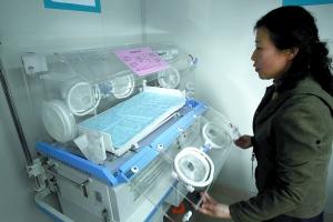 普通婴儿床的旁边,还摆放着一个婴儿专用保温箱,上面附有图文并茂的使用说明。工作人员称;“保温箱为体弱婴儿准备,但我们担心(家长)不会使用。”