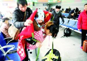 昨天,一家三口在北京西站候车。晨报记者 王巍/摄