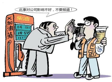 “柴油中水分超标40倍,这样的油你敢加吗?”近日,黑龙江省法学会消法研究会常务副会长王绪坤在微博上举报哈尔滨市尚志市苇河镇中石油加油站,称其油质严重不合格。惊人的超标数字引起热议。有网友说:“国内加油站在油里加水是普遍现象。只是量多量少的问题,车主们都见怪不怪。”(1月27日《新京报》)