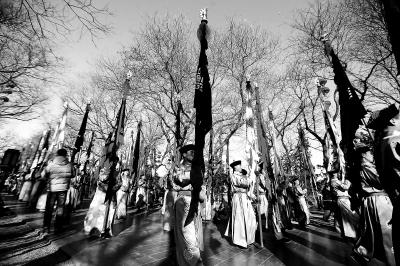 斋宫门前,旗罗伞盖猎猎飘展,刀枪剑戟熠熠生辉,文武百官和八旗武士依次列阵完毕……今天上午,“皇帝”预演天坛祭天,拉开了天坛公园文化周的序幕。