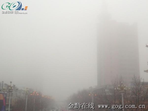 昨日上午11时,整个安顺上空仍然是雾蒙蒙一片。天气变得阴沉,此时的光线与傍晚时分无异。在繁华的新大十字,大楼完全处在大雾中,很难见到高楼的楼顶。
