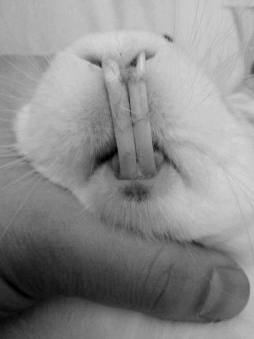 都说兔子的牙长,但你见过牙齿超级长的兔子吗?住在沈阳的一位市民家养的宠物兔子长出了超长的一对牙齿,达到正常兔牙长度的四倍,下牙居然已长到了鼻孔附近。宠物医生称,这种现象可能是由于兔子被笼养后吃食过软而无法磨牙造成的。被人类饲养的动物的牙病也千奇百怪,有的甚至需要用到专业的动物牙科手术台。