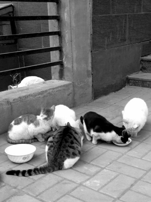 小区居民常给这些流浪猫送食物