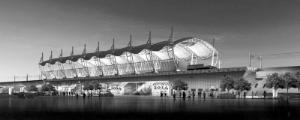 南京禄口机场正在建设的T2航站楼,如白色的大鸟展翅,波浪形的屋面上8个天窗如游动的鲸鱼。目前,航站楼主体已基本建成,建筑总面积26万平方米,还有一个超大面积游园广场,从飞机上俯视塔台,形如梅花。
