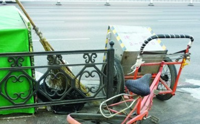 沈阳环卫女工护栏边捡烟头被撞飞(图)