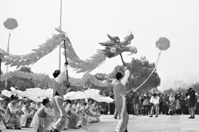 江汉区荷花龙艺术团正在表演。记者 彭年 摄