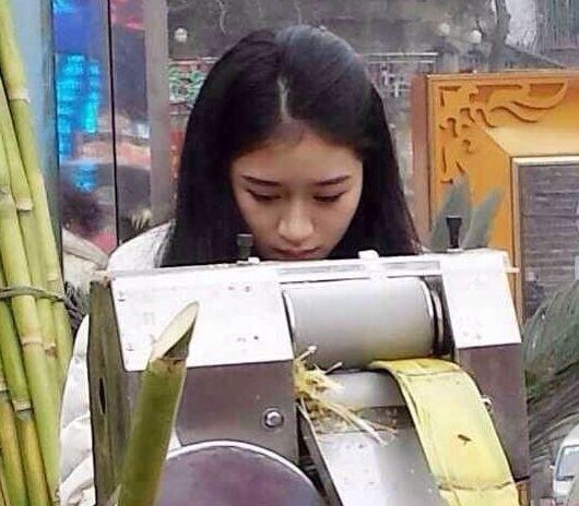 记者看到网帖配的照片中的“甘蔗西施”戴着一副橡胶手套,穿着一件橡胶围裙,正在榨甘蔗汁,确如网友描述的长相清纯甜美,身材高挑。