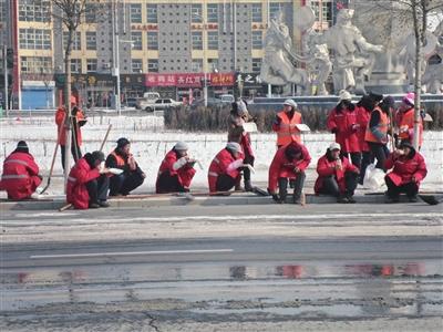 当日参与清雪活动的新华中街清扫班班长丁晓娟说,9日上午,她和20多个环卫工人到凤凰南街和治平路交会处参加清雪工作,一直持续到中午12点。由于环卫工人来自不同的路段,就餐地点离治平路较远,加之劳动量较大,大家为了节省时间就提议,直接在路边吃饭。
