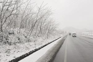 据贵州省气象部门统计,受冷空气影响,昨日我省70县(市、区)出现降雪,42县(市、区)出现凝冻。贵州省气象台预计,至2月12日,贵州将继续维持低温阴雨(雪)天气。图为2月10日,在开阳县双流镇,车辆从积雪路面上经过。■新华社图片
