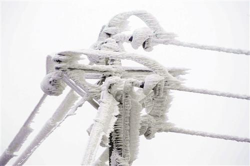 酉阳 大雪造成酉阳多地出现停电。图为被冻的10千伏线路。通讯员 陈碧生 摄