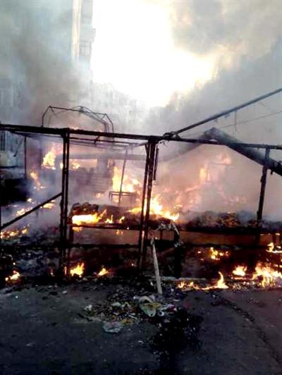 新浪博友@哈市老火10日发微博称,哈市某小区一处活动板房起火,火灾导致旁边停放的货车和轿车受损,所幸无人员伤亡。经记者核实,起火地点在哈市南岗区海河东路市场,起火板房为一处水果摊。据附近商贩介绍,起火时间大概是7时30分,当时起火速度很快,火势也很大。发现起火后有人拨打火警电话,随后消防官兵赶到现场,将大火扑灭。□记者 王珣