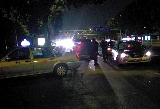 昨晚,广州芳村客运站外,不少出租车在等客 梁怿韬 摄