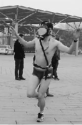 说了半天,“光猪跑”给人的第一印象可能是穿着内衣赛跑,其实不然。除了穿得少以外,“主题”是少不了的,很多年轻人别看身上衣服少,头上却挺花哨,各种卡通人物、超人英雄的面具让人眼花缭乱,几位男士甚至穿上了比基尼,很是吸人眼球。