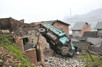四川一大货车冲下路面撞塌民房 致3人被埋(图)