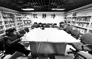 丰体时代小区地下人防工程改造成了社区活动中心,这里的益民书屋内还有5000册图书提供免费阅读。