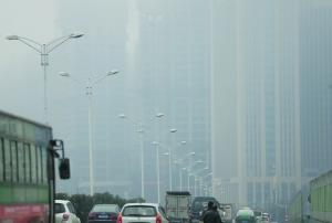 昨日早上,位于观山湖区部分楼盘被雨雾笼罩,交通干道一度缓行。 张志红 摄