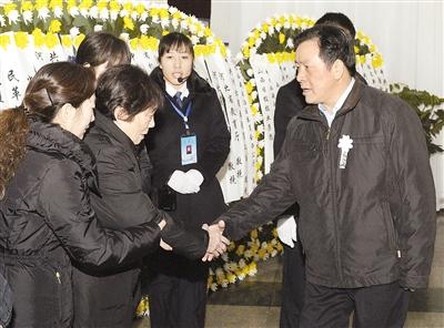 9时30分,周本顺、张庆伟、付志方等,在哀乐声中缓步来到李文珊同志遗体前肃立默哀,向李文珊同志的遗体三鞠躬,并与亲属一一握手,表示慰问。