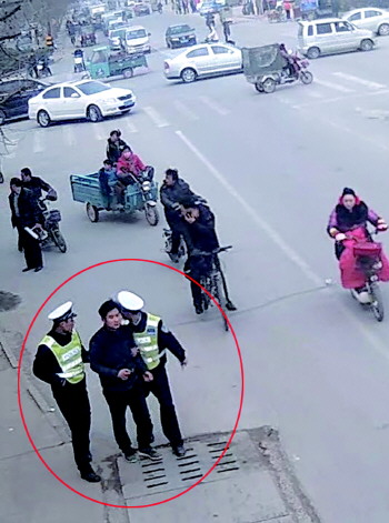 男子闹市疯抢他人治病钱 两协警狂追200米制服