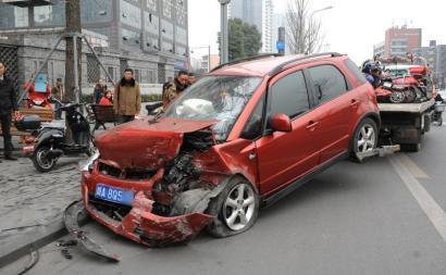 2月24日,成都通惠门街,一辆红色铃木汽车失控,冲上街沿。