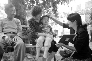 网格化管理员街头了解情况。本报记者 黄一冰 摄