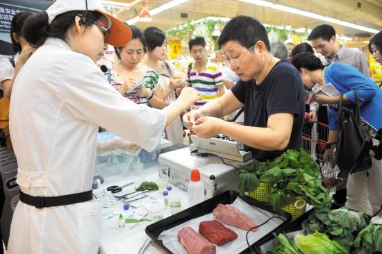 深圳某超市正帮顾客测试农药残留 羊城晚报记者 王磊 摄