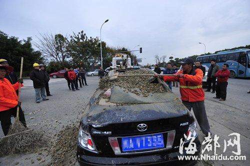 下午3时许,在民警、环卫等的协助下,轿车被拖走,石子被清理走,现场交通恢复正常。(海峡都市报记者 陈文浩 黄启鹏 实习生 夏雨晴)