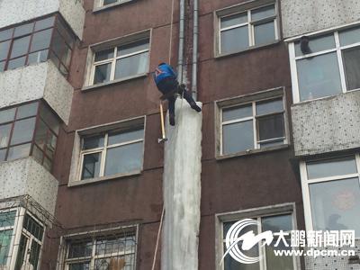 十米高大冰柱悬空中 物业花六小时将其清除