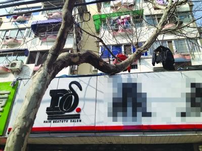 前天上午,秦淮区的李先生给扬子晚报96096新闻热线来电反映:自己在秦虹路上开了一家理发店,门口有一棵梧桐树,但树枝压到了门头,很担心把门头压塌了,更糟糕或许会砸到行人。随后,扬子晚报记者来到李先生的店所在的位置。记者看到这棵树位于店面的右前方,树干伸出两个枝丫,而较粗的一个就在门头的正上方,并且靠在一起。