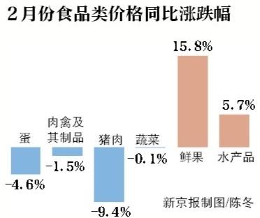 从食品价格具体来看,2月份,食品价格同比上涨2.9%。与一路看涨的态势相比,肉蛋价格却是在走“下坡路”。环比来看,2月份,食品价格环比上涨1.4%。蛋价格下降3.2%,肉禽及其制品价格下降0.8%,猪肉价格下降3.0%。