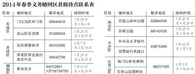 北京设21处义务植树接待点