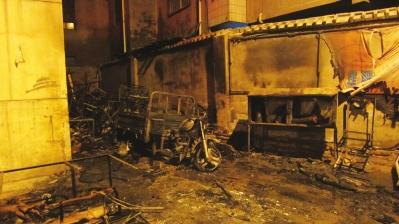3月10日晚9时许,段家滩摩托车市场内发生火情,周边居民报警后,市公安消防支队拱星墩中队、高新区中队赶到现场,将火势扑灭。有三四辆车受到了不同程度损毁。目前,火灾原因还在调查中。(记者刘怡麟实习生张润璞摄)