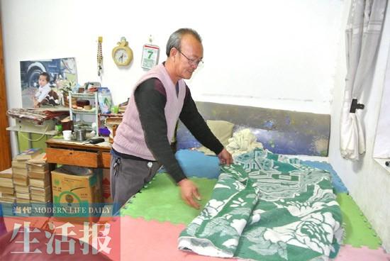 后来,吕瑞源长成了一个大小伙,身边人开始帮他张罗对象了。他记得,结婚那天,原本是应该和新婚妻子同盖一床被子的,但因为他很怕热,他只得自己和妻子分开睡,他盖他的毯子,妻子自行盖棉被。这个习惯后来一直延续下来,直到2010年吕瑞源的妻子去世。妻子去世后,吕瑞源很是伤心,感觉身体大不如从前。但即使如此,去年他住院,也不像其他病人一样要盖厚厚的被子,一样是一床毛毯裹身即可。